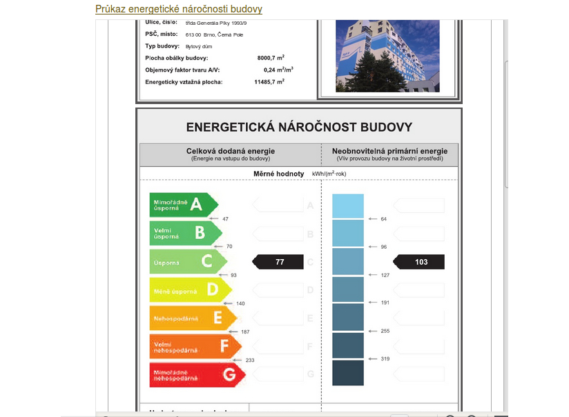 Energetický průkaz PENB je označen "C" (úsporné).
